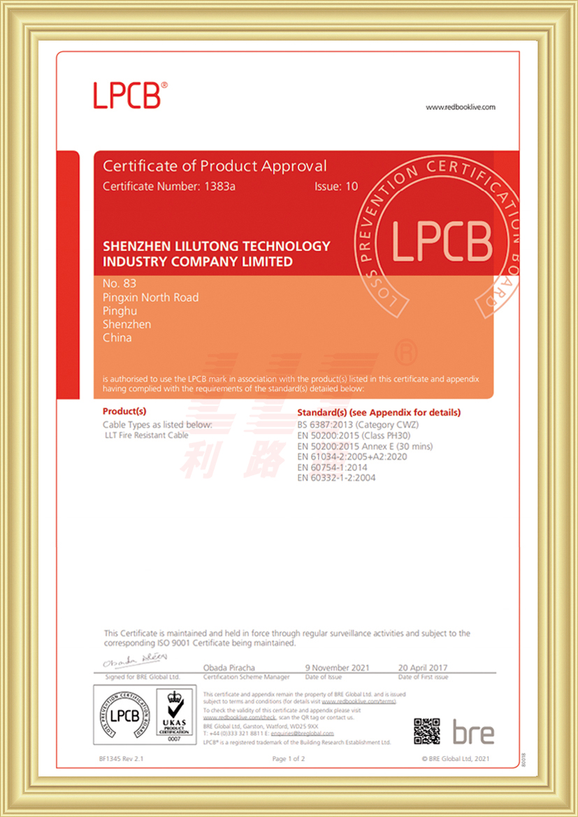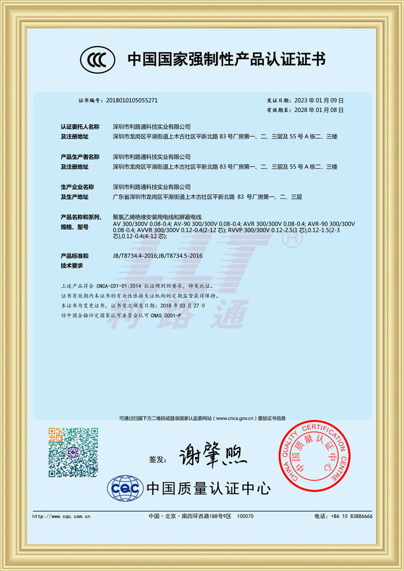 深圳市利路通科技實業有限公司成立于2001年,是一家主要從事防火線纜、硅膠線纜、橡膠線纜、低煙無鹵線纜、通訊線纜、漂浮線纜、耐寒線纜、控制線纜、柔性線纜、電梯線纜、機器人線纜、新能源專用線纜、光纖綜合線等全系列電線電纜的產品設計、研發、生產、銷售、工程方案銷售服務的綜合性企業,產品廣泛應用于消防與安防,通訊,新能源,太陽能,高層樓宇,軌道交通,橋梁,工業4.0設備,船舶,航空,軍工等領域并榮獲深圳高新技術企業、全國守合同重信用企業、深圳市愛心企業、深圳市消防安防百強企業、電線電纜協會理事會單位、國家一級計量體系合格企業、中國優秀民營科技企業。